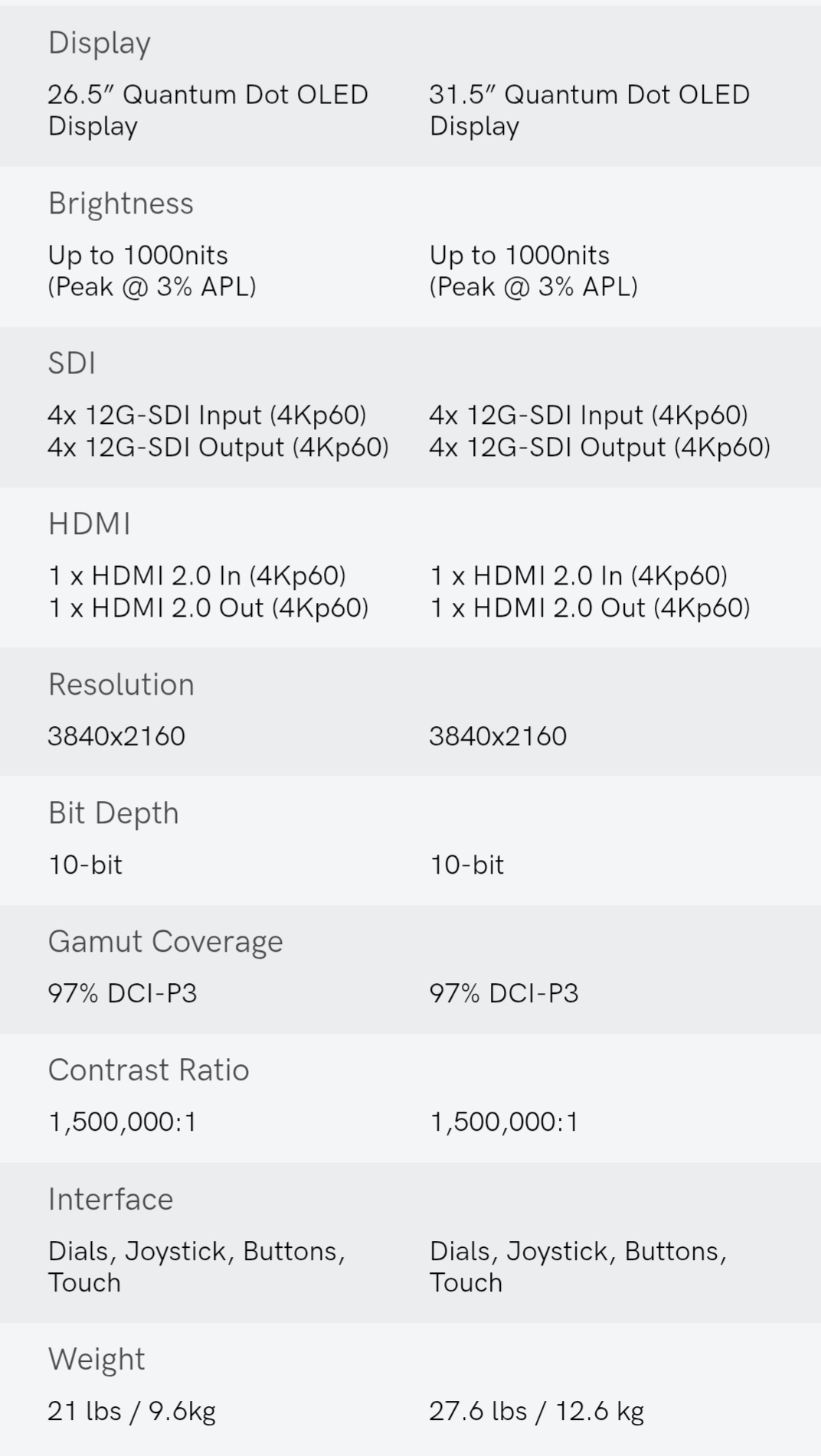 Quantum 시리즈는 모션 픽처 제작 및 포스트 프로덕션의 요구를 충족시키기 위해 SmallHD와 삼성디스플레이가 협력하여 만든 결과물입니다.